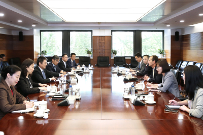凌激副部长兼国际贸易谈判副代表会见百威亚太首席执行官程衍俊