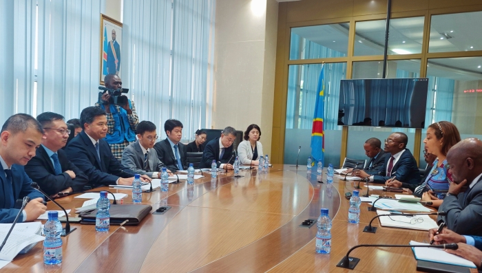 8月27日,盛秋平副部长在刚果(金)会见刚果(金)外交、国际合作和法语国家事务部部长级代表卡扎迪·迪塔巴拉·贝丝蒂娜。